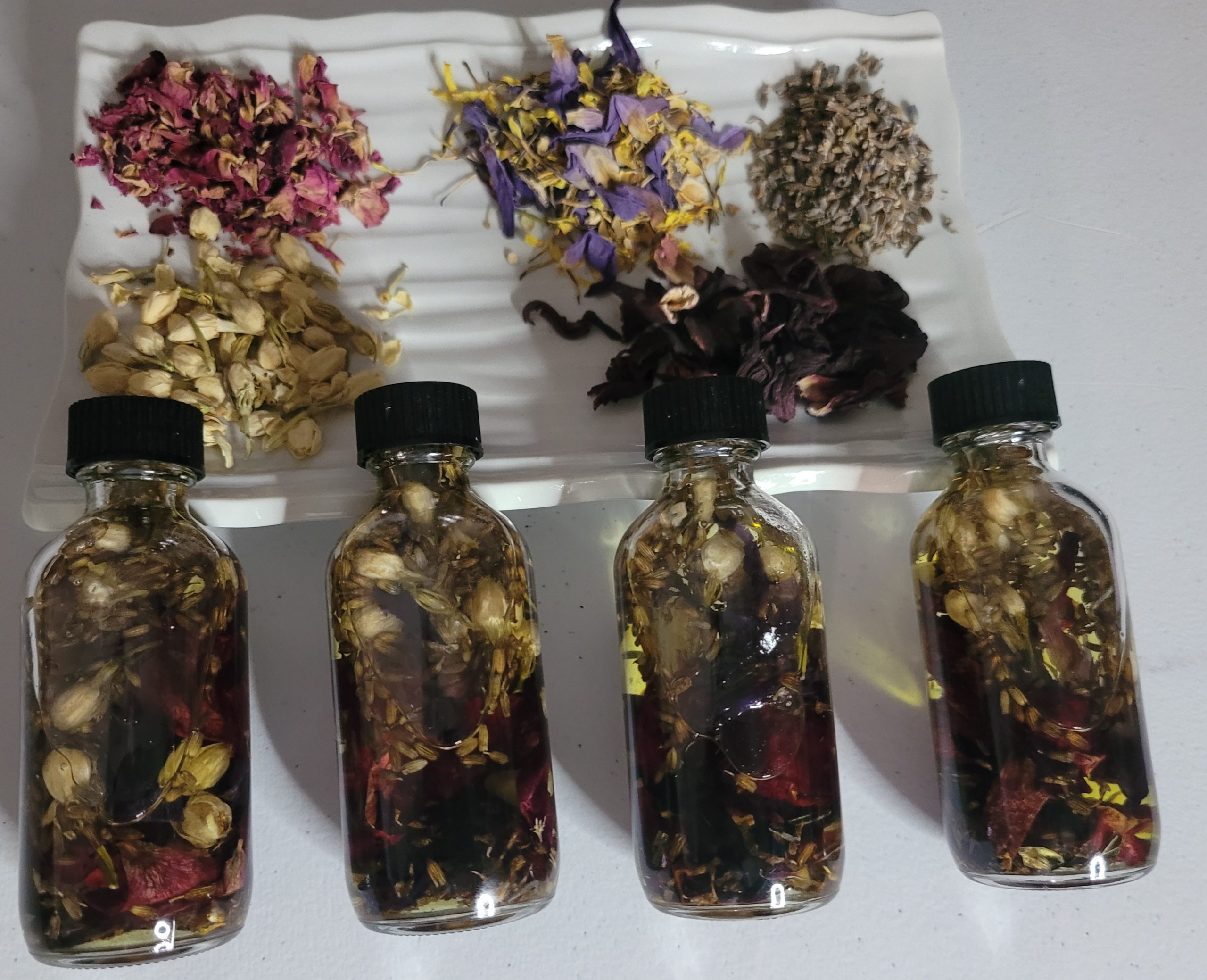Pheromone Oils with Jasmine, Rose, Calendula, Lilies, Lavender & Hibiscus flowers.